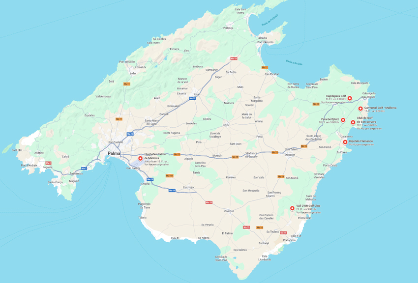 Vom Flughafen aus fahren wir eigenständig zum Hotel in Cala Millor. Der Weg dorthin geht über die Autobahn MA-19a und dann weiter auf der MA-15 Richtung Osten, ggf. nutzt ihr die Navigationsfunktion über das Fahrzeug (sofern vorhanden) oder über das eigene Smartphone, um zum Hipotel Flamenco zu gelangen.